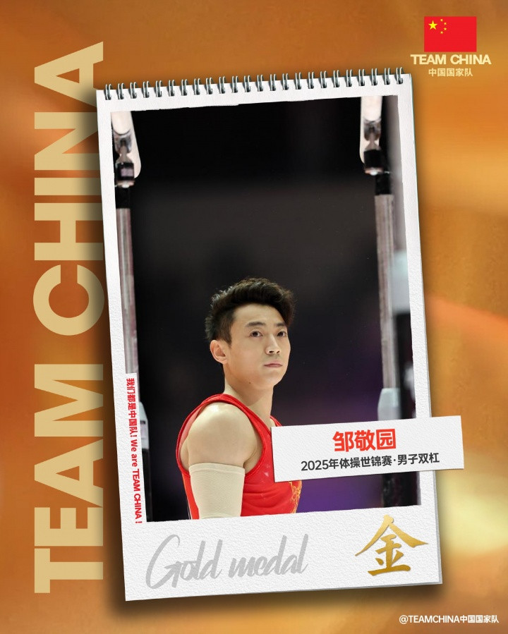 在此之前,邹敬园曾先后在2017年、2018年和2022年世锦赛双杠项目中,收获金牌。凭借本届世锦赛的精彩表现,邹敬园成功实现世锦赛双杠“四冠王”成就。