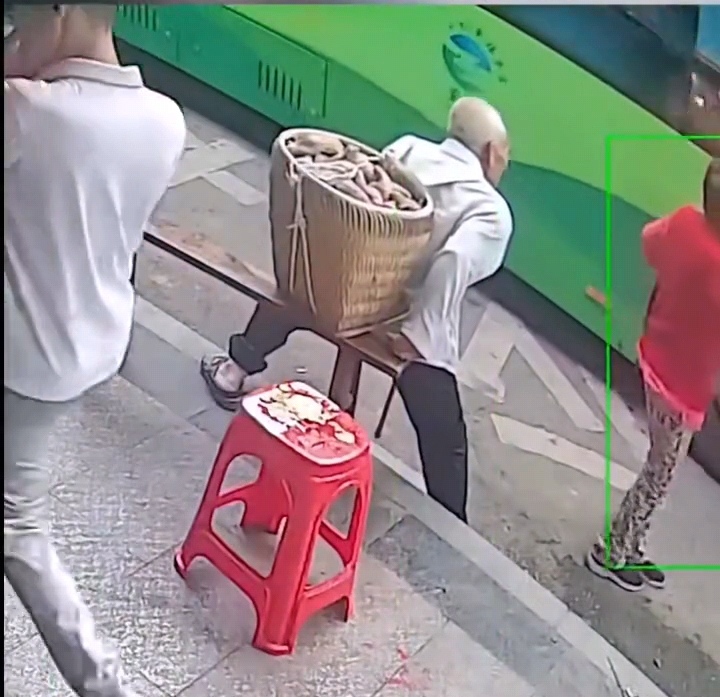 老人俯身背背篓之际浙商证券证交所,公交车已发动驶离。网传视频截图