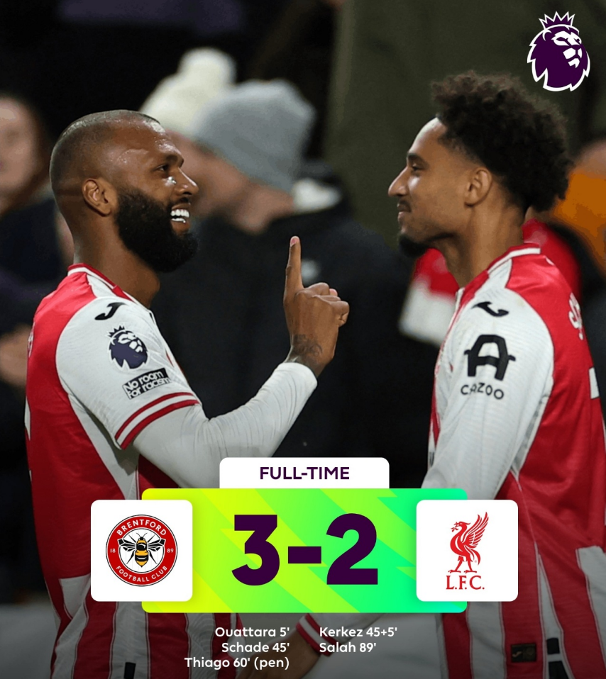 比赛第5分钟,布伦特福德就用“手榴弹”界外球战术攻破利物浦球门,这是利物浦连续第6场比赛先丢球。瓦塔拉的倒钩破门暴露了利物浦对定位球防守的严重问题。半场结束前布伦特福德打出快速反击,沙德的单刀将比分扩大为2-0,利物浦的防线在对手反击面前显得不堪一击。尽管科尔克兹补时阶段扳回一城,但范戴克第60分钟的送点让布伦特福德再次领先两球。萨拉赫第88分钟的进球未能挽救败局。